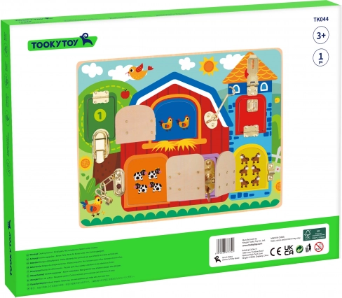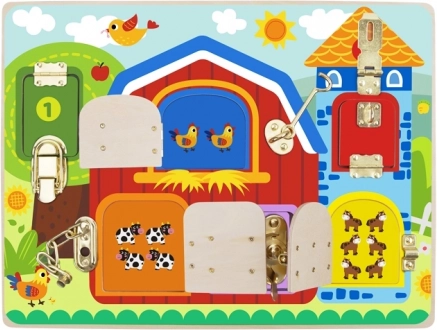 Drvena manipulativna ploča sa zaključavanjima farma – Tooky Toy
