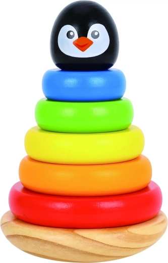 Šarmantan drveni slagajući toranj u dizajnu pingvina donosi djeci puno zabave i učenja u jednom. Zahvaljujući šarenim prstenovima djeca vježbaju finu motoriku, koordinaciju ruka-oko i strpljenje te se kroz igru uče slagati dijelove u ispravnom redoslijedu.