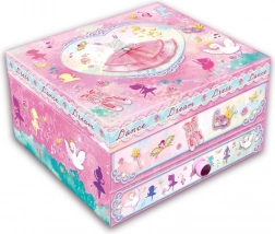 Pohranite svoje dragocjenosti u prekrasnu glazbenu kutiju za nakit s motivom balerine. Nakon navijanja i otvaranja svira nježnu melodiju koja će očarati svaku malu princezu.