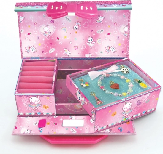 Kutija za nakit u obliku koferića prekrasan je način za čuvanje dječjeg nakita i sitnica. Dizajn mačkice daje kutiji slatkoću koju djeca obožavaju.