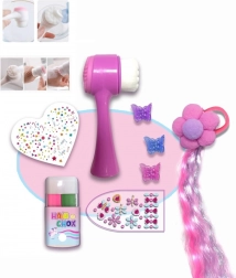 Slatki frizerski studio za male modne kreativce donosi sate stvaralačke zabave. U setu ćete pronaći šarene kredice za kosu, gumicu s obojenim pramenovima, štipaljke u obliku leptira, ukrasne kamenčiće, četkicu za čišćenje lica i naljepnice. Idealan poklon za djecu do 6 godina.