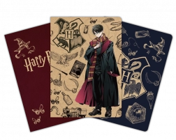 Stilski set od tri bilježnice u formatu A6 s licenciranim motivom HARRY POTTER. Kompaktna veličina za torbu i ruksak, idealno za bilješke, popise i ideje. Kvalitetan papir i atraktivan Hogwarts dizajn razveselit će obožavatelje i kolekcionare.