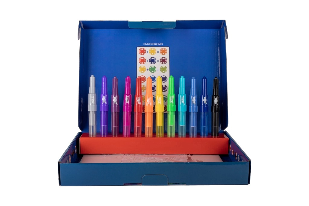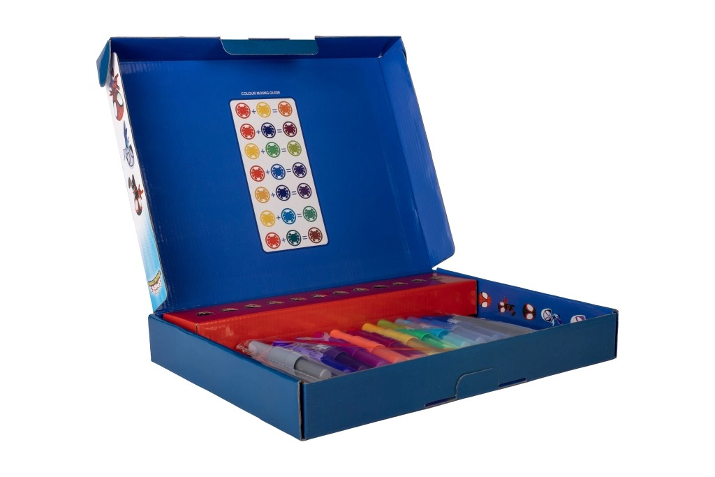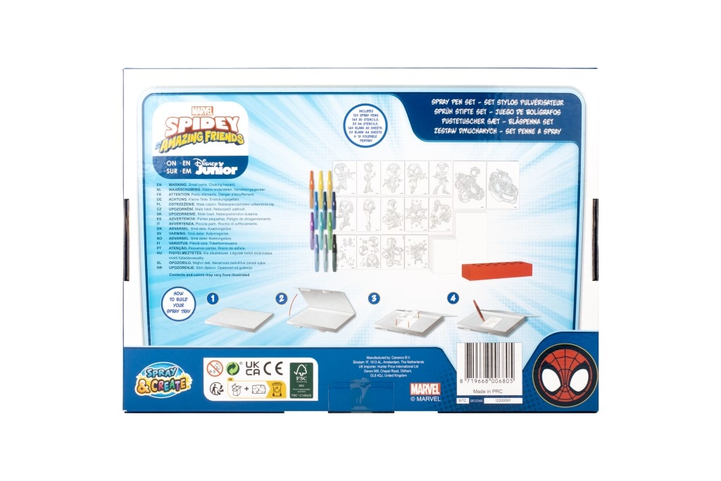 Otkrijte kreativni svijet crtanja sa setom sprej flomastera Spidey! Ovaj kompletan set idealan je za sve male umjetnike koji žele stvarati zadivljujuće crteže uz pomoć sprej flomastera.