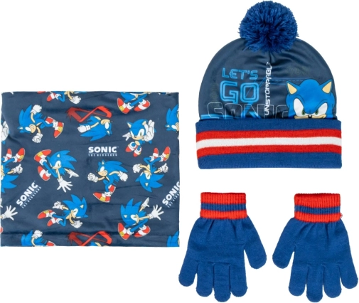 Set se sastoji od kape s pomponom, rukavica i grijača za vrat u plavo-crvenoj kombinaciji. Idealan za školu, igralište i zimske izlete – djeca će zavoljeti žive boje i omiljenog junaka SONIC-a.