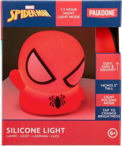 Otkrijte meko i sigurno osvjetljenje s motivom Spider-Mana. Silikonsko tijelo SquishyGlo-a ugodno je stisnuti, ne peče i odlično pristaje u dječju sobu kao noćna lampica, ali i kao opuštajući dodatak za odrasle. Integrirana punjiva baterija i USB kabel u pakiranju osiguravaju jednostavno korištenje kod kuće i na putu.