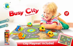 Autići imaju idealnu veličinu za vježbanje hvata i udobno držanje u malim ručicama. Igra na podlozi s gradskim motivom potiče maštu, prostornu percepciju i koordinaciju oko–ruka. Set je odličan izbor za zajedničku igru i samostalno istraživanje.