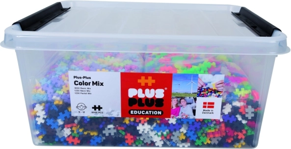 Otkrijte beskrajne mogućnosti kreativnog slaganja s spremnikom Plus-Plus koji sadrži ukupno 6000 dijelova u osnovnim, neonskim i pastelnim bojama. Praktična kutija s poklopcem idealna je za skupine, vrtiće i škole, a dio pakiranja je i brošura sa zadacima za djecu. Proizvedeno u Danskoj od reciklirane plastike, bez ftalata i s jednostavnim održavanjem.