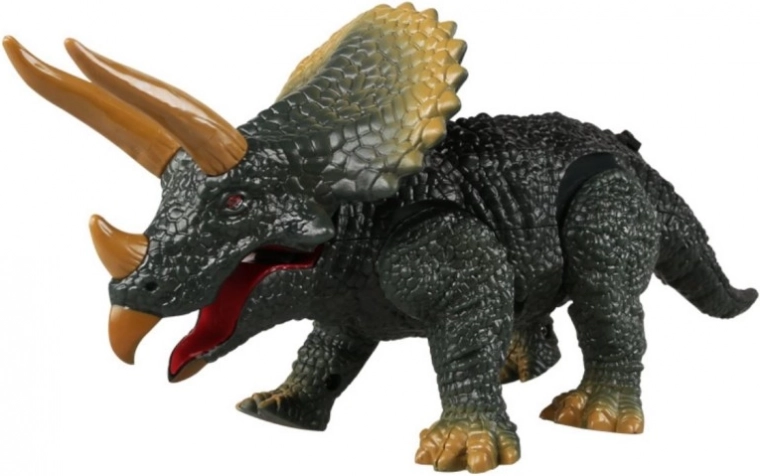Uđite u svijet dinosaura s realističnim triceratopsom na daljinsko upravljanje. Dinosaur se glatko kreće naprijed i natrag, otvara usta i akciju prati zvučnim efektima. Zahvaljujući infracrvenom upravljaču upravljanje je jednostavno i intuitivno, pa će djeca brzo savladati sve funkcije.