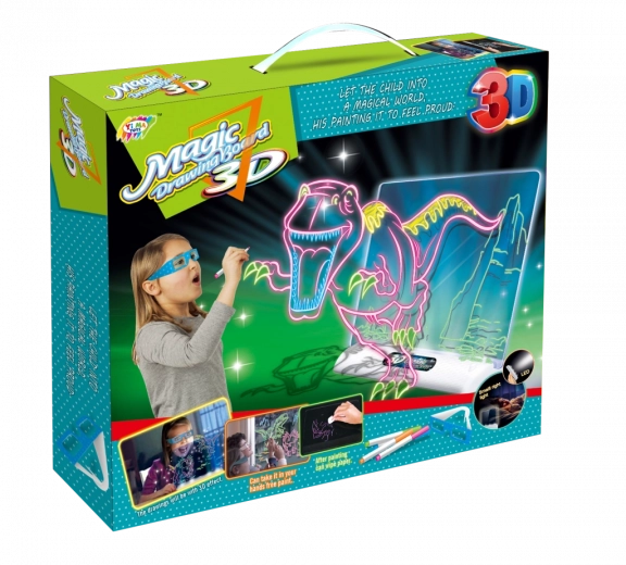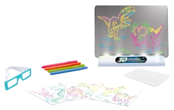 Ova 3D crtaća ploča omogućuje djeci da vide svoje crteže u novoj dimenziji. Dovoljno je nacrtati sliku na priloženu pločicu, umetnuti je u čitač i staviti 3D naočale. Rezultat? Trodimenzionalno remek-djelo koje oduševljava!