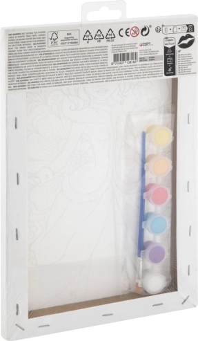 - Sadržaj pakiranja: predtisnuto platno, 6× vodena boja, kist