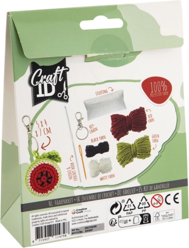 Izradite originalni heklani privjesak za ključeve s motivom duge, lubenice ili sunca – ovaj kompletan set za heklanje sadrži sve potrebno: heklicu, pređu (100 % poliester), punilo, prsten s karabinjerom i iglu.