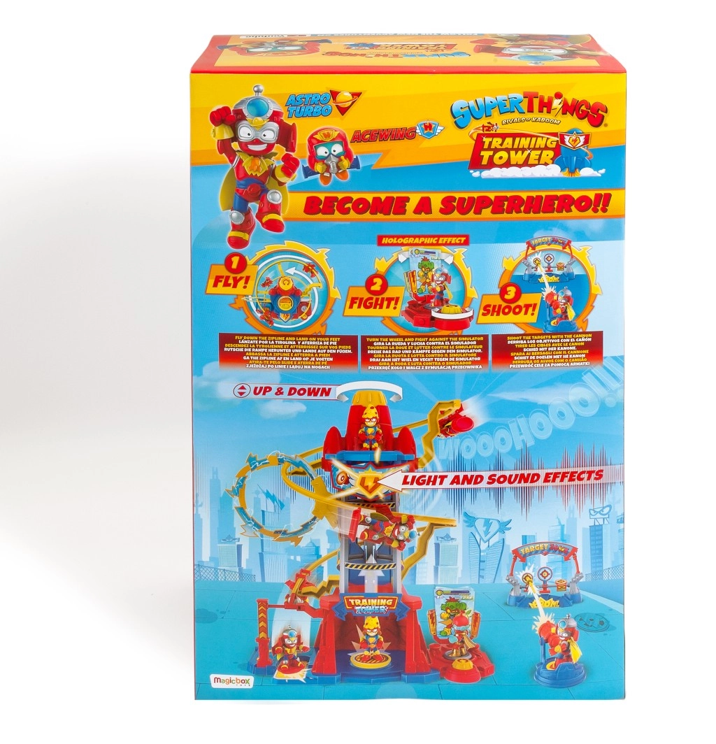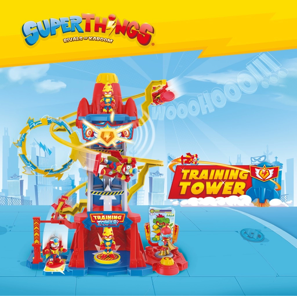 Pripremite se za nezaboravnu zabavu s Trening kulom SuperThings S! Ova uzbudljiva kula s efektima svjetla i zvuka nudi vam savršeno mjesto za uvježbavanje akrobatskog letenja vaše figurice Kazoom Kid u Kaboom Cityju. Postavite svoju figuricu na vrh kule i gledajte kako juri prema dolje, spremna za akcijsku avanturu.