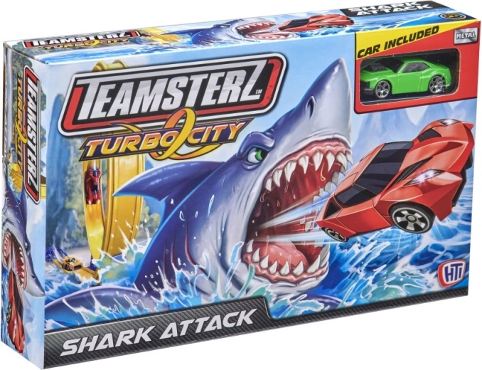 Doživi adrenalinsku vožnju s igračim setom TEAMSTERZ – morska pista sa petljom, elastičnim izbacivačem i morskom zamkom. Ispali autić, proletI kroz veliku petlju i izbjegni opasne čeljusti morskog psa. Sjajna zabava koja potpomaže kognitivni i motorički razvoj djece od 3 godine naviše.