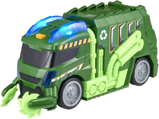 Futuristički kamion za smeće TEAMSTERZ donosi djeci autentičan doživljaj čišćenja grada. Plavo trepćuće svjetlo, realistični zvukovi motora i kamiona za smeće te mnoštvo funkcionalnih detalja čine ovu igračku izvrsnim pratiteljem za svakodnevnu igru. Zahvaljujući priloženim baterijama spreman je za akciju odmah.