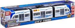 Otkrijte svijet gradske prijevoza s tramvajem Teamsterz. Ova igračka je opremljena funkcijom otvaranja vrata i dva fleksibilna spoja omogućavajući lako savijanje, što imitira pokret pravog tramvaja.