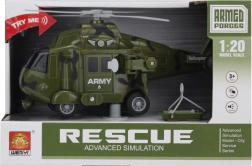 Ovaj detaljno izrađen vojni helikopter u mjerilu 1:20 pruža autentičan doživljaj zahvaljujući svjetlosnim i zvučnim efektima. Idealan za ljubitelje zrakoplovstva svih dobnih skupina!