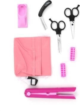 Postani stilist s vlastitim frizerskim alatima! Ovaj set sadrži simulirani fen i peglu za kosu, koji omogućuju uređivanje frizura kao profesionalni frizer. Uključuje svjetlosne i zvučne efekte za realistično igranje.
