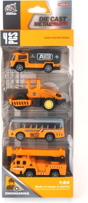 Ovaj set metalnih i plastičnih mini vozila donosi djeci beskrajne mogućnosti igre. Realistični detalji građevinskih i radnih strojeva istaknut će se u svakoj utrci i pri izgradnji zamišljenog grada. Mehanizam pull-back radi pouzdano i idealan je za kratke i duge staze po podu ili stolu.