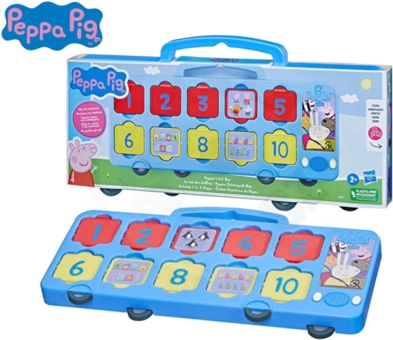 Otkrijte zabavan način učenja brojanja s omiljenim likom Peppa Pig. Šareni autobus 1–2–3 ima okretne prozorčiće s brojem s jedne strane i odgovarajućim brojem predmeta s druge. Praktična ručka olakšava nošenje, tako da djeca mogu ponijeti igračku bilo kamo i prirodno razvijati brojanje, finu motoriku i pamćenje.