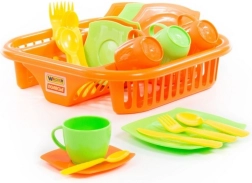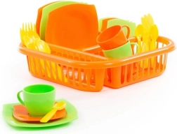 S ovim šarenim setom posuđa svako dijete brzo će otkriti čaroliju kuhanja i čišćenja. Set je lagan i prilagođen malim dječjim rukama, što ga čini idealnom igračkom za najmlađe. Pustite svoju djecu da uživaju u realnoj igri u kuhinji: pripremu ručka i zatim čišćenje kao čarolijom. Svi dijelovi izrađeni su od plastike, što olakšava rukovanje i sigurno je.