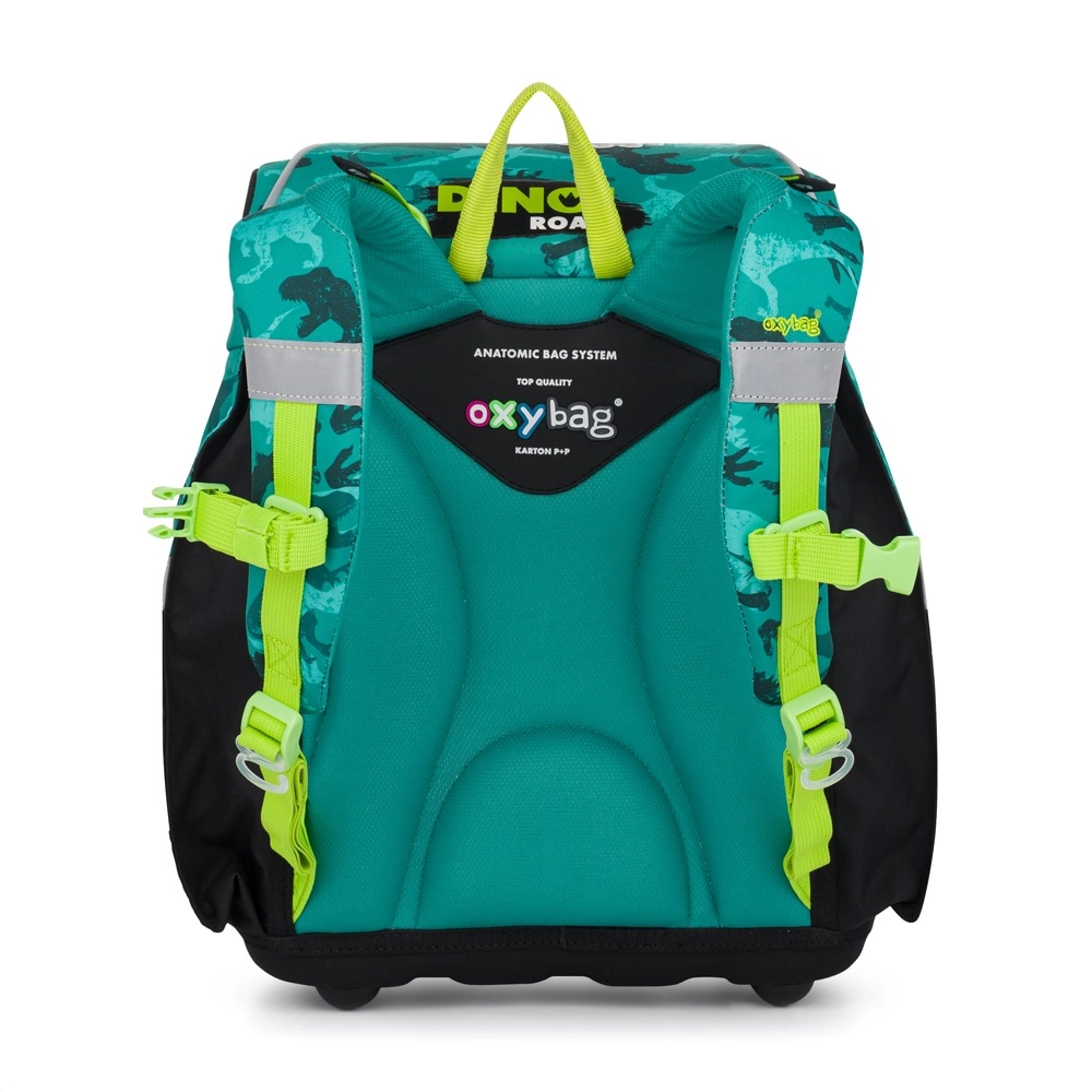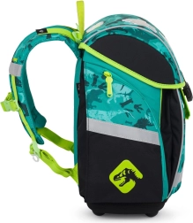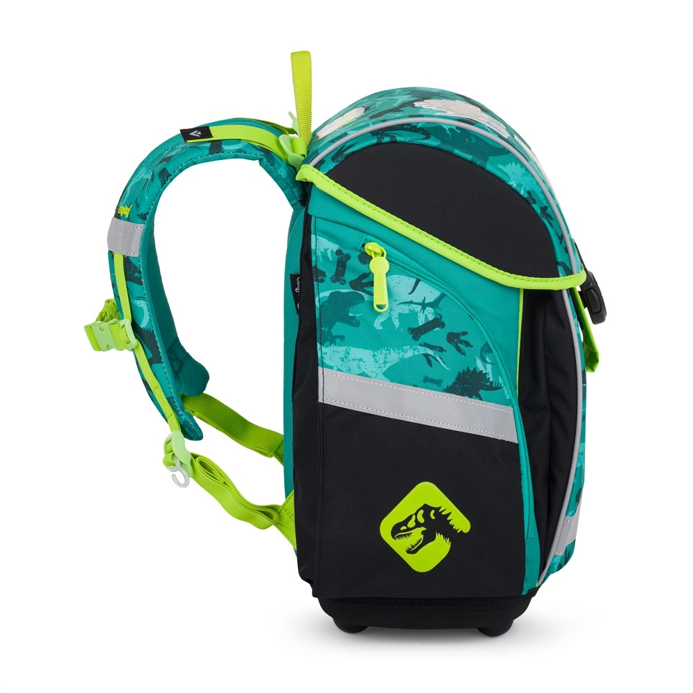 Školska torba Premium Light Dino kombinira olakšanu konstrukciju s pametnom organizacijom za svakodnevno pohađanje nastave. Prozračno podstavljena leđa i ergonomski oblikovane, široke i podstavljene naramenice raspoređuju teret i osiguravaju udobno nošenje tijekom cijelog dana. Zatezne i prsne trake pomažu savršeno namjestiti torbu na leđima.