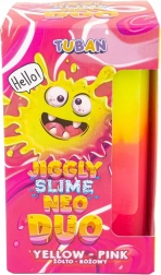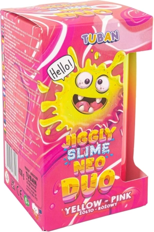 Jiggly Slime Neo Duo odličan je izbor za djecu i odrasle koji vole antistres igračke. Zahvaljujući jedinstvenoj formuli, slime se zabavno trese, lijepo se rasteže i omogućuje stvaranje mjehurića i originalnih slime trikova. Dvobojno izdanje u neonski žutoj i ružičastoj tijekom igre se efektno spaja u dojmljivu nijansu.