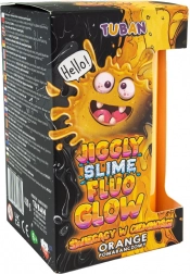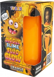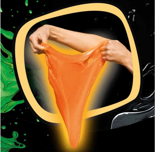 Ovaj jedinstveni Jiggly Slime zahvaljujući posebnoj formuli ugodno vibrira i trese se na dodir, a pritom se lako rasteže u svim smjerovima. Idealan je za dugo gnječenje, prebacivanje iz ruke u ruku, rastezanje i izradu mjehurića. Fluorescentni pigment mu daje zasićenu narančastu boju i efekt glow-in-the-dark za još zabavniju igru.