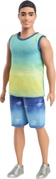 Lutka Ken je ovdje sa širokom figurom, odjevena u ombre top koji prelazi iz plave u zelenu, idealna za sve osobnosti i prilike. Pocepane traper šorcevi i srebrne tenisice dopunjuju njen univerzalni i sofisticirani izgled, bez obzira radi li se o susretu s prijateljima ili zabavi na plaži.