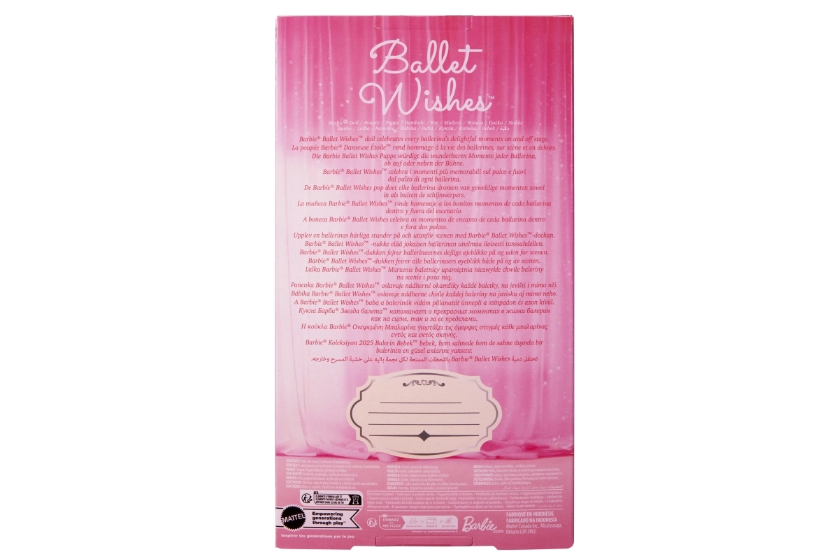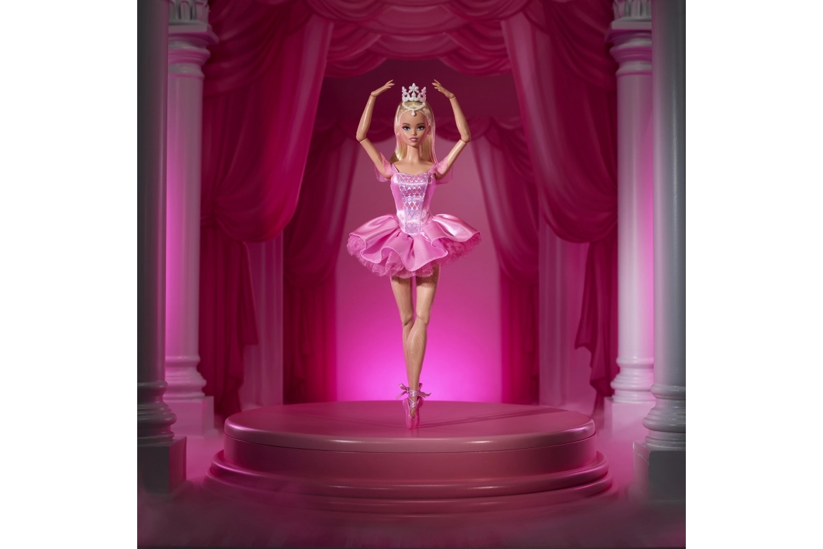 Lutka Barbie prekrasna balerina stvorena je za sva velika pozornica. Nježni ružičasti tutu kostim s slojevitom suknjom, tijara i ružičaste baletne cipelice s mašnicama naglašavaju elegantan izgled balerine. Pokretni zglobovi na ramenima, laktovima, zapešćima, kukovima i koljenima omogućuju realistične baletne poze i glatke prijelaze među njima.