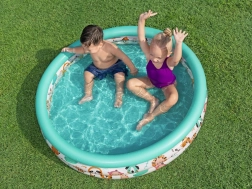Bazen dimenzija 122 cm x 25 cm i kapaciteta 140 litara pruža dovoljno prostora za prskanje, a da ne zauzima puno mjesta. Namijenjen je djeci starijoj od 2 godine pod nadzorom odrasle osobe.