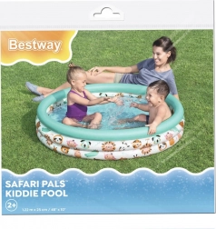 Dječji napuhujući bazen Safari Životinje marke Bestway izrađen je od visokokvalitetnog i izdržljivog PVC-a, što garantira dugi vijek trajanja i otpornost na oštećenja. S tri napuhujuća prstena pruža stabilnost i udobnost tijekom igre. Mekani zidovi osiguravaju udobnost i sigurnost tijekom vodenih aktivnosti vašeg djeteta.