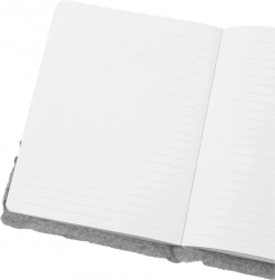 Siva, na dodir ugodna korica s vezenim detaljima i ušima daje vašim bilješkama čar i štiti unutarnje stranice.