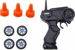 Doživite akcijsku vožnju s ovim trkaćim RC automobilom 1:24 u elegantnoj plavoj boji. Zahvaljujući frekvenciji 2,4 GHz imate glatku kontrolu bez smetnji, brzina do 15 km/h donosi adrenalin, a izmjenjivi kotači (s gaznim slojem i glatki) omogućuju stabilnu vožnju i drift. U pakiranju se nalaze i čunjevi za izgradnju staze – idealno za djecu od 6 godina.