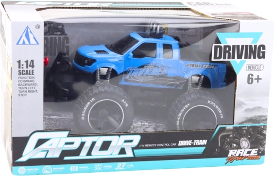 Plavo terensko RC vozilo u mjerilu 1:14 idealan je izbor za djecu i početnike u off-roadu. Robusna konstrukcija, realistična karoserija, branici i farovi naglašavaju atraktivan izgled, dok se veliki pneumatski kotači nose s različitim vrstama podloga.