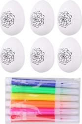 Ovaj zabavni set donosi sve što djeca trebaju za izradu originalnih pisanica. Jaja imaju glatku bijelu površinu spremnu za bojanje, iscrtavanje i dorađivanje. Zahvaljujući priloženim flomasterima u šest boja djeca mogu odmah stvarati i razvijati svoju kreativnost.