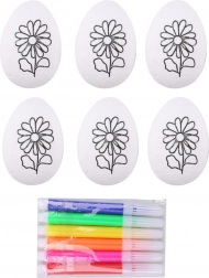 Kreativni set za djecu i odrasle: 6 laganih stiropornih jaja s uzorkom cvijeta i 6 raznobojnih flomastera za lako ukrašavanje. Idealno za uskršnje stvaralaštvo, razvoj kreativnosti i finu motoriku. Jaja imaju glatku površinu spremnu za bojanje te su odlična za kućnu zabavu, školu i vrtić.