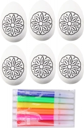 Kreativni set za djecu i odrasle: 6 stiropornih jaja s uzorkom cvijeta i šareni flomasteri za lako ukrašavanje uskrsnih jaja. Idealno za kućno stvaranje, školu i vrtić. Jaja imaju glatku površinu, odlično se boje i pomažu razvijati finu motoriku, kreativnost i radost stvaranja. Savršeno kao uskrsna dekoracija i poklon.