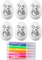 Set sadrži 6 jaja i 6 šarenih flomastera – žuti, narančasti, crveni, plavi, ružičasti i zeleni – tako da možete odmah početi. Stvaranje potiče finu motoriku, koordinaciju oko–ruka i dječju maštu.