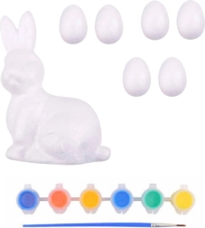 Izradite vlastite uskrsne ukrase s ovim zabavnim setom za djecu i odrasle. Sadrži 6 polistirenskih jaja, figuricu zečića, 6 boja i kist. Jaja imaju glatku površinu idealnu za bojanje, ukrašavanje i oslikavanje. Odlično za razvoj kreativnosti i fine motorike te kao originalan uskrsni ukras.