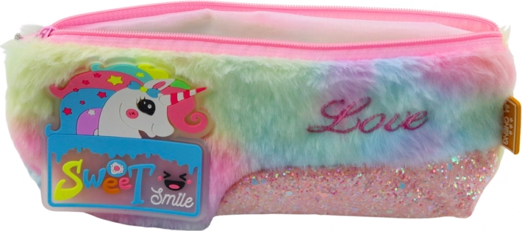 Uživajte svaki dan s ovom neodoljivom pernicom koja ne samo da izgleda čarobno, već je i iznimno praktična. Sjajan, šareni dizajn pridonosi radosti djece, dok je mekani, plišani materijal ugodan na dodir. Pernica ima patentni zatvarač za jednostavno zatvaranje koji osigurava da sav vaš školski pribor ostane sigurno unutra.
