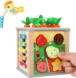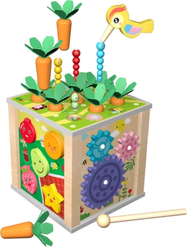 Ova inovativna igračka spaja zabavu s učenjem i potiče razvoj djetetovih sposobnosti kroz šest raznolikih aktivnosti. Drvena kocka izvrstan je alat za razvoj motoričkih vještina i samostalnosti.