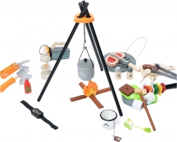 Drvena kamp-set igra idealna je zabava za djecu. Sadrži realističnu opremu poput ruksaka, svjetiljke, noža, sjekire i logorišta, što djeci omogućuje doživjeti prava avanturistička iskustva i razvijati kreativnost.