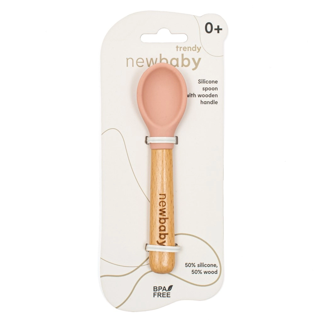 Dječja žličica iz linije New Baby Trendy nudi spoj drvene drške s finim graviranjem logotipa i kvalitetnog silikona bez BPA. Ova žličica duljine 14 cm namijenjena je lakom i sigurnom hranjenju djece već od najranije dobi.