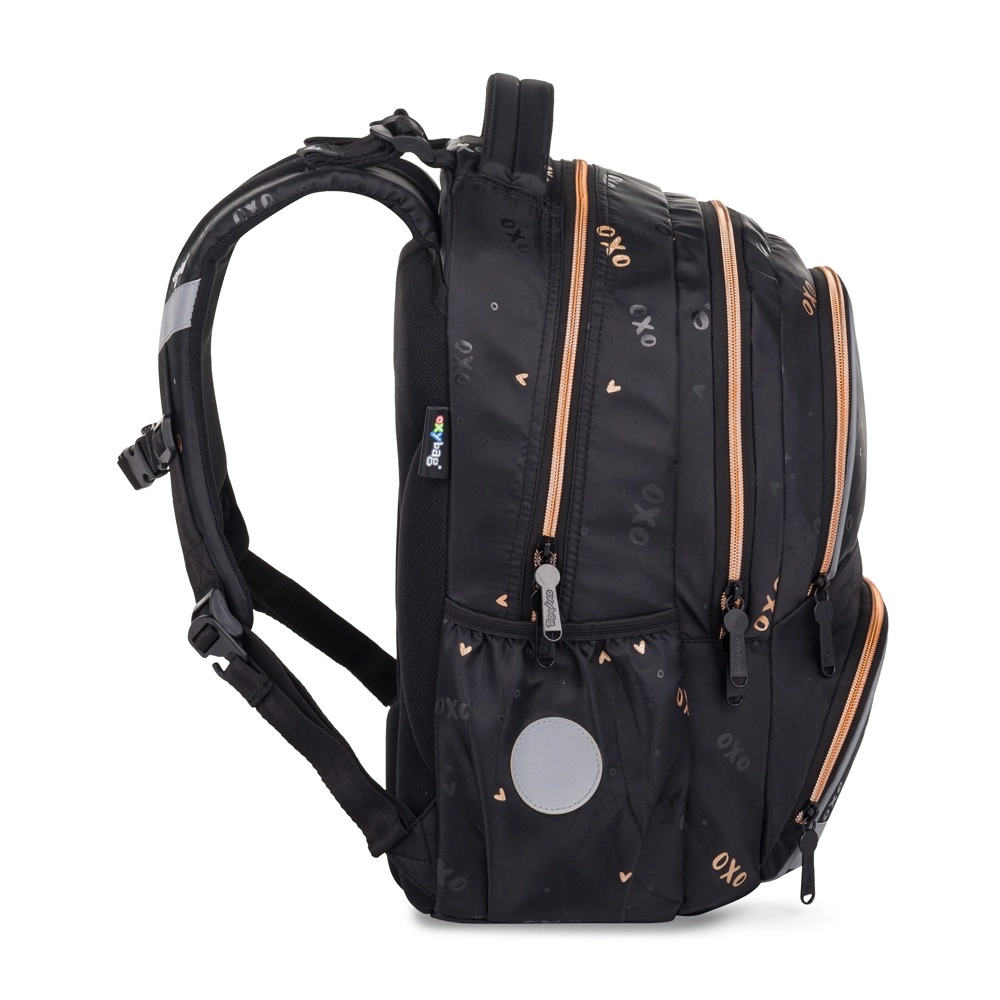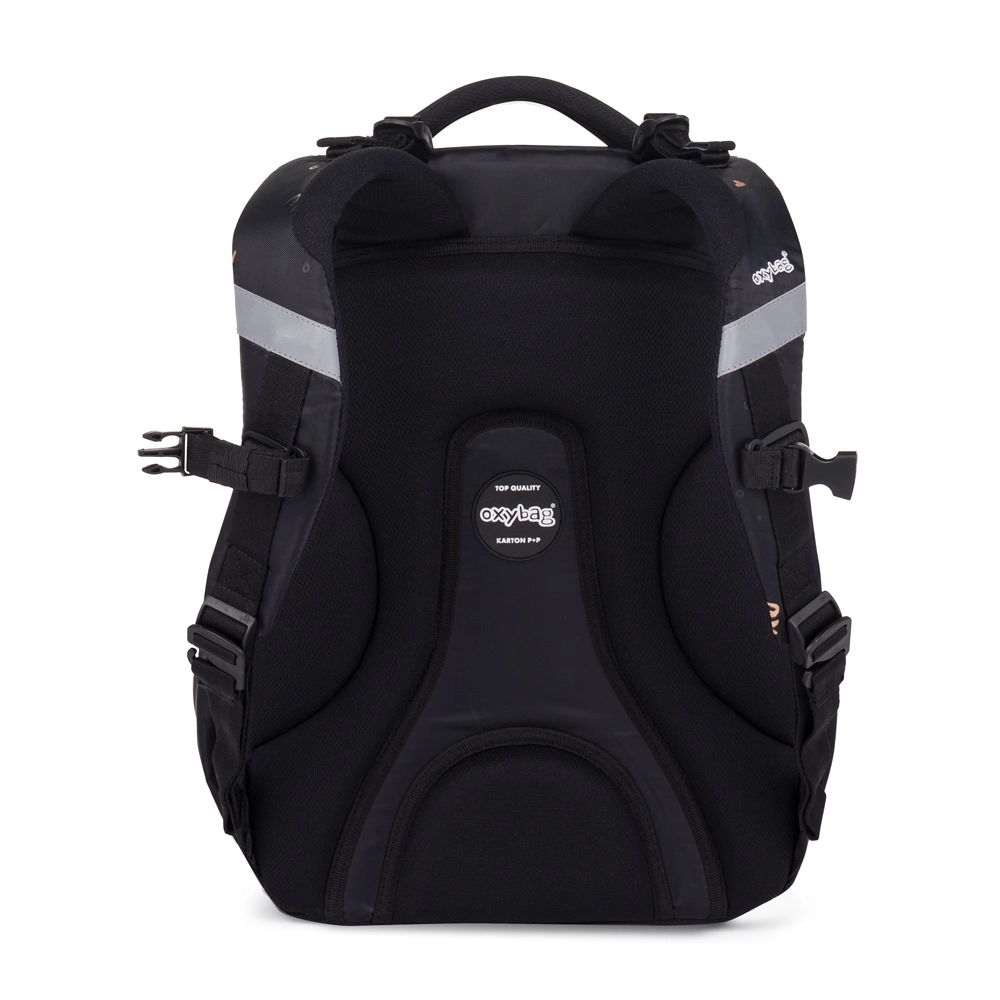Torbа Oxy Next OXO osmišljena je kako bi djeci pružila udobnost i red tijekom cijelog školskog dana. Anatomski oblikovan leđni panel (42 cm) i meke, podesive naramenice s prsnim remenom osiguravaju pravilno pristajanje na leđima i smanjuju opterećenje. Reflektirajući detalji povećavaju vidljivost na putu u školu i kući.