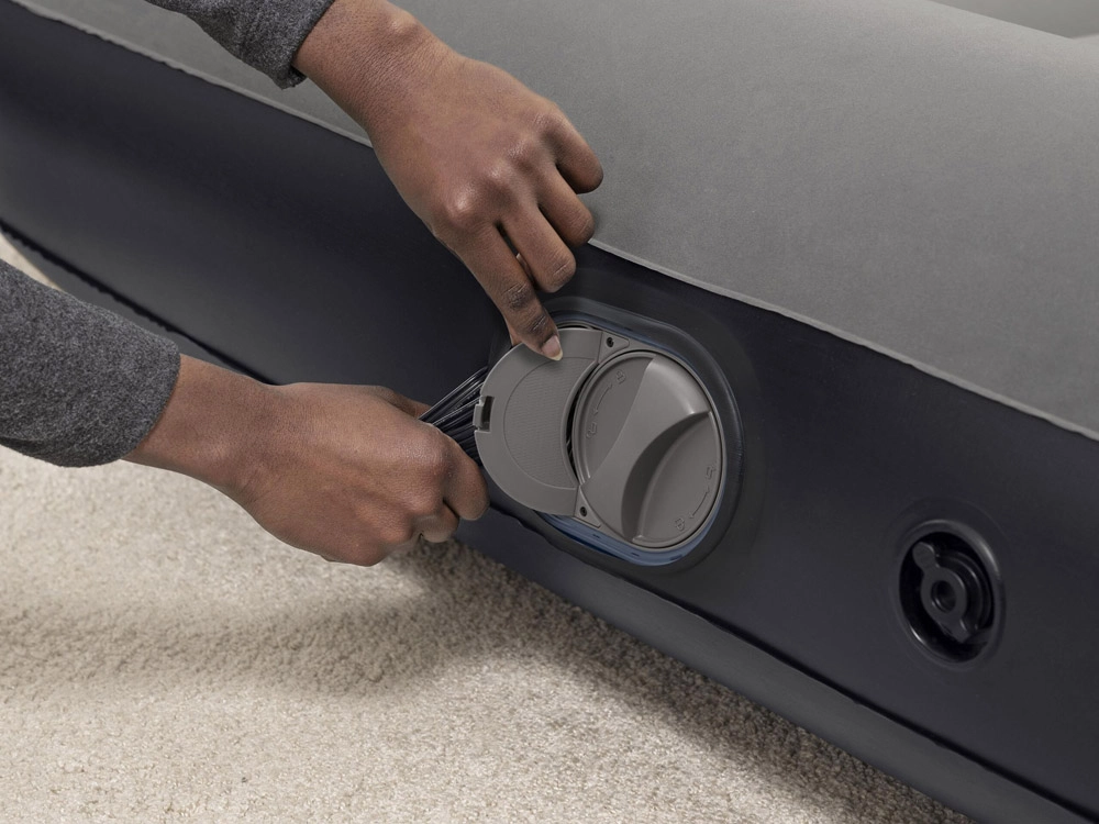 Integrirana pumpa s USB napajanjem napuhuje madrac za 3–4 minute. Jednostavno rukovanje kod kuće, na vikendici i u kampu – dovoljno je priključiti na adapter ili powerbank.