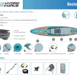 Hydro-Force Glider Elite osmišljen je za duge i glatke vožnje po mirnoj vodi. Njegov uski oblik osigurava da s lakoćom savladava i veće udaljenosti. Paddleboard se može transformirati u kajak zahvaljujući odvojivom sjedalu i podesivoj duljini vesla. U setu se dodatno nalazi udobni naslon i pumpa za lako napuhavanje.