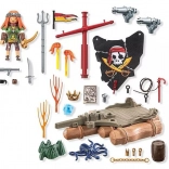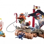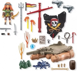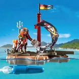 Krenite u neustrašivu potragu za blagom s gusarskim splavom iz serije PLAYMOBIL! Splav ima rotirajuću balistu i svijetli u mraku zahvaljujući glavi u obliku lubanje, što je savršeno za epske pomorske okršaje. Hrabri gusar brani svoj plijen, štiteći kristalnu lubanju i krunu uz pomoć topa, spašavajući se od napadajućih pirana.