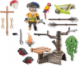 Istražujte izgubljena blaga s Playmobil setom Pirat s balistom. Splav je opremljen rotirajućim topovima koji osiguravaju zaštitu tijekom plovidbe otvorenim morem. Pažljivo složena oprema nalazi se u bačvi kako bi sve bilo spremno za iznenadne prijetnje.