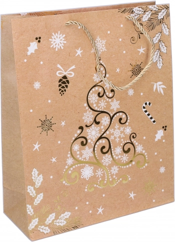 Stilska poklon-vrećica veličine M dimenzija 26 × 32 × 10 cm idealna je za pakiranje božićnih poklona. Nudi 4 različita božićna motiva, čvrstu izradu i praktične ručke za udobno nošenje.