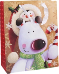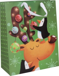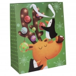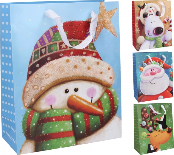 Izvrsna božićna darovna vrećica srednje veličine s dimenzijama 32x26x12 cm za praktično pakiranje vaših poklona. Odaberite među 4 različita motiva za jedinstven izgled.